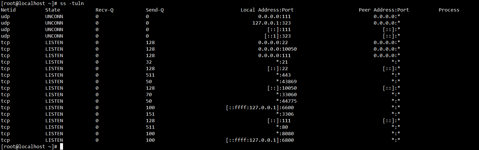 ss -tuln