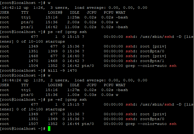root 1470 1468 0 16:42 ? 00:00:00 sshd: root@pts/1