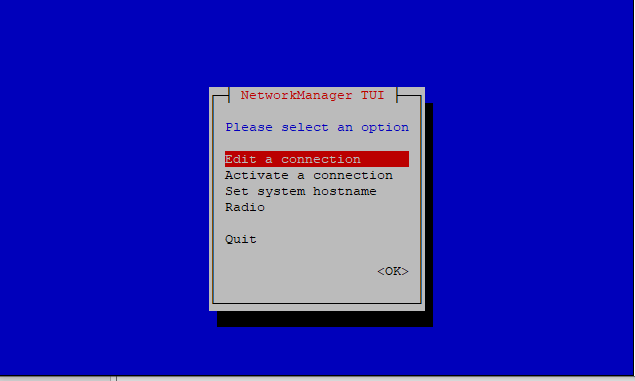 먼저, 터미널에서 nmtui 명령어를 실행하여 텍스트 기반 설정 UI에 진입합니다.
