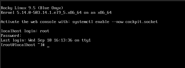 시스템이 재부팅된 후, 방금 설정한 새로운 비밀번호로 root 계정에 로그인하여 정상적으로 접속되는지 확인합니다.