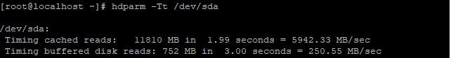 [root@localhost ~]# hdparm -Tt /dev/sda